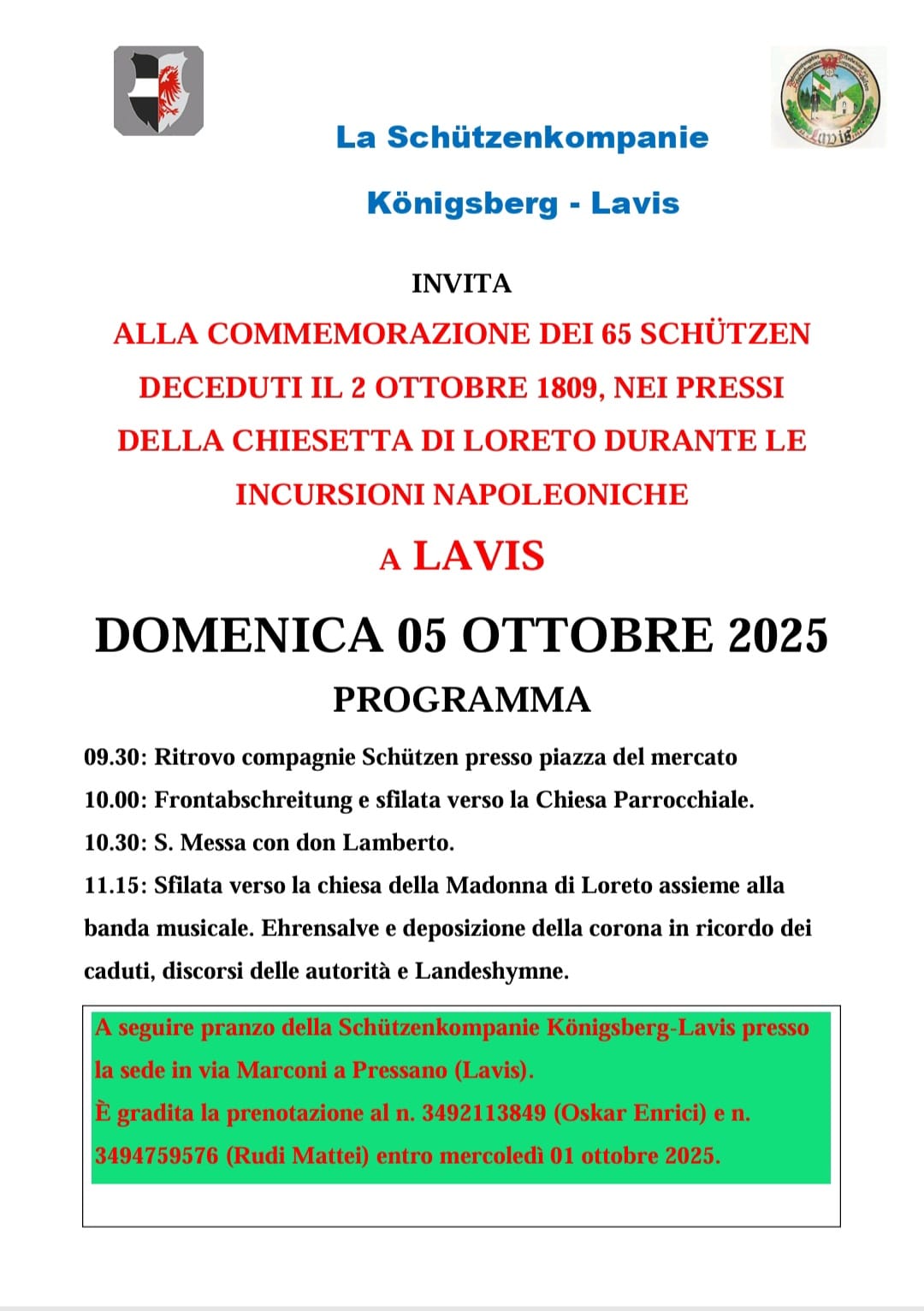 04/10 SK Konigsberg 10-11-12/10 Gara di tiro federale invito 10/10 SK Pergine Caldonazzo 12/10 Absam 14/10 Giornata del ricordo 24/10 Le mani sul Tirolo |
