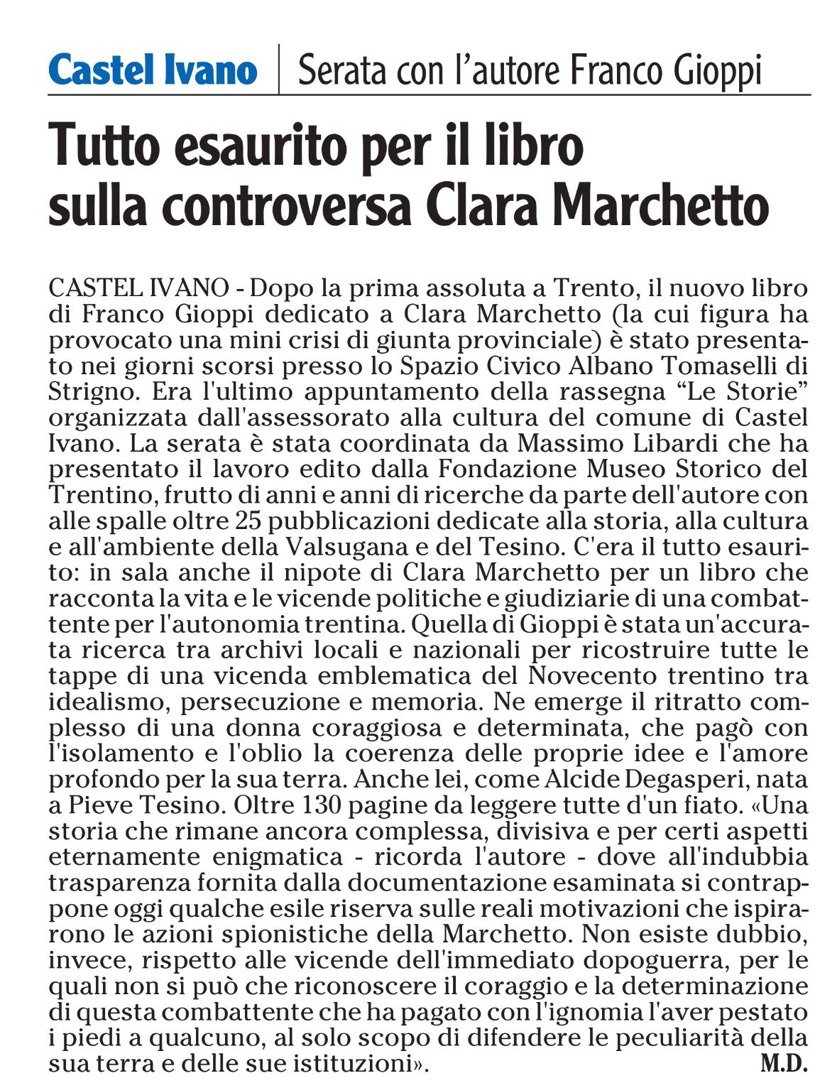 Albano Tomaselli (Strigno) Castel Ivano. YouTube - Le stagioni di Clara Parte / introduzione / prima / seconda / Terza Giornali - l'Adige / l'Adige |