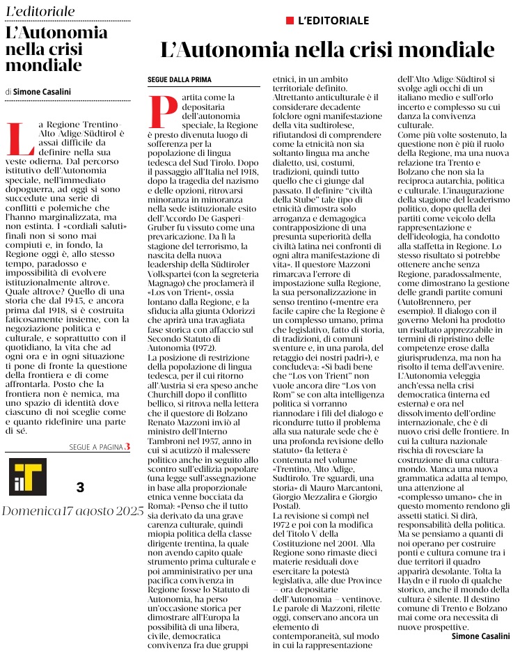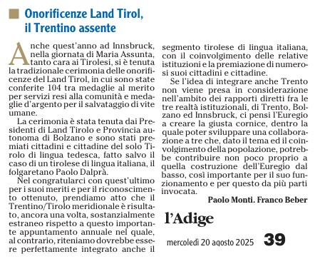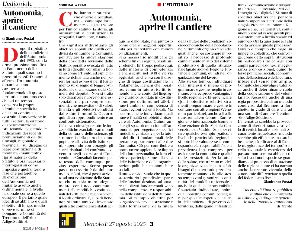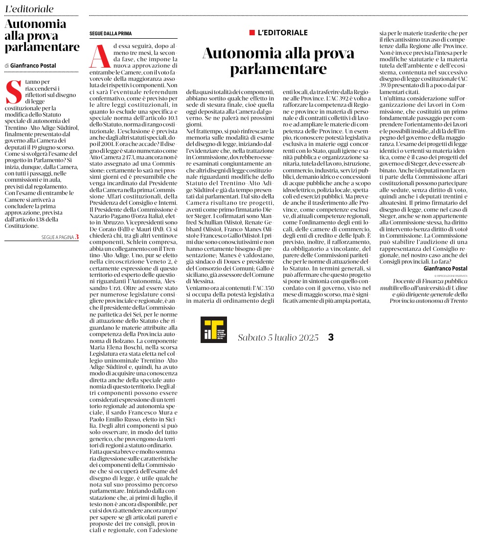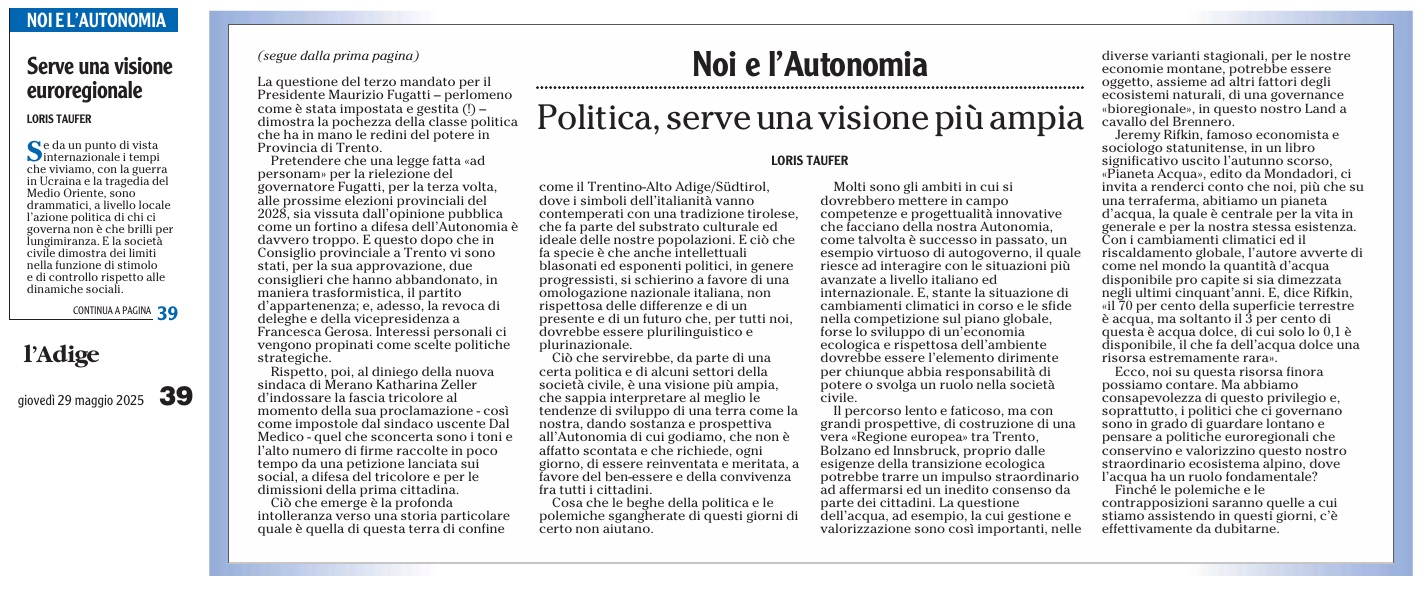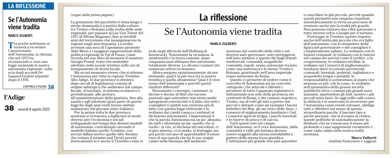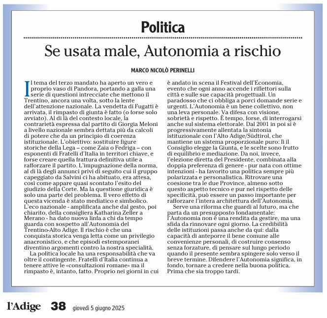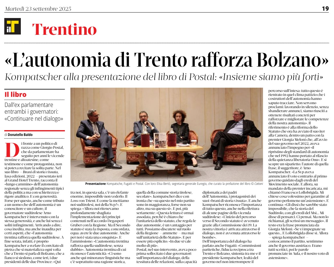 Autonomia bloccata perchè siamo divisi su Regione e Euregio  |