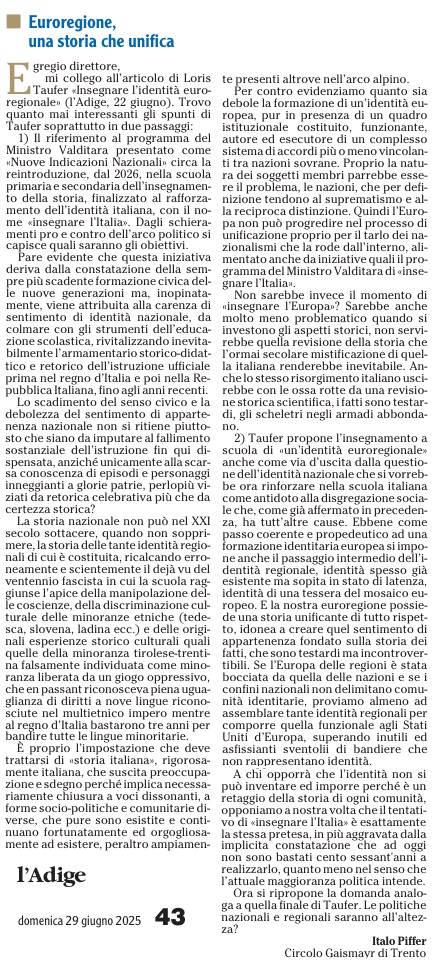 la Regione è Incontro. L'Euregio dimensione più adatta ai tempi