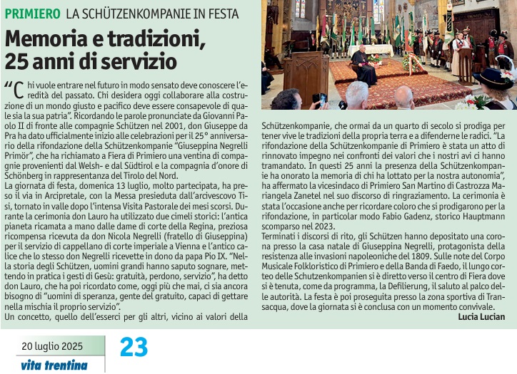 Il Primiero, terra di partecipazione alle sofferenze umane -
