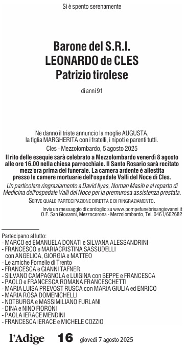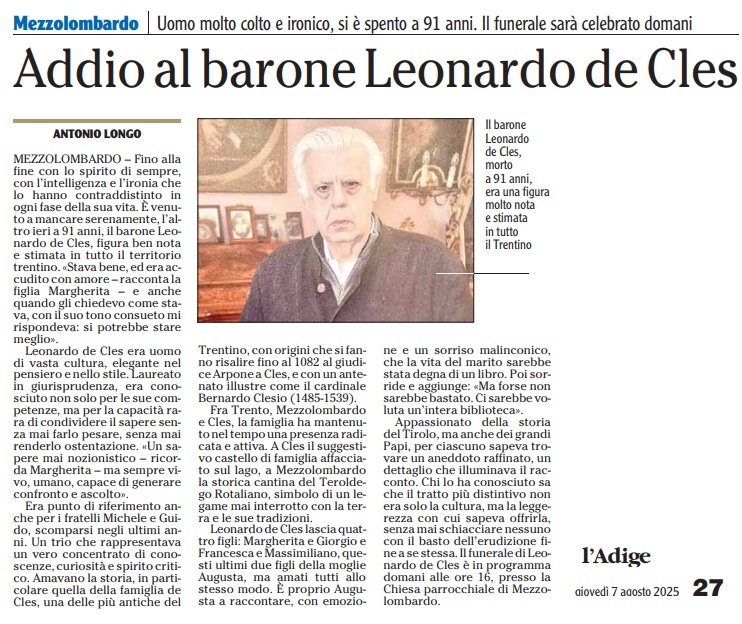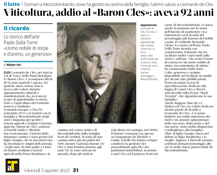Viticultura, addio al Baron Cles_ aveva 92 anni  |