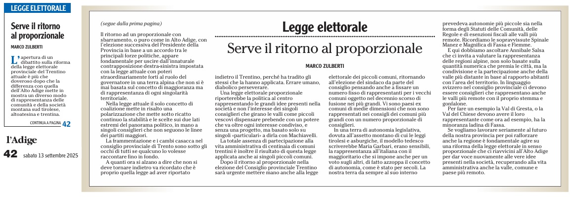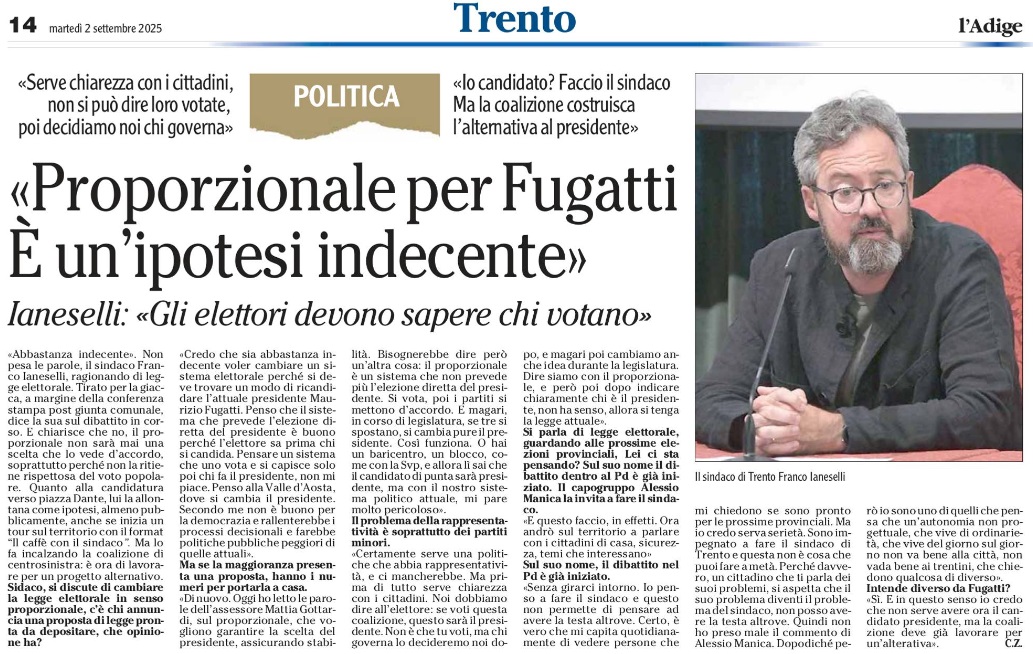 Proporzionale per Fugatti é un ipotesi indecente  |