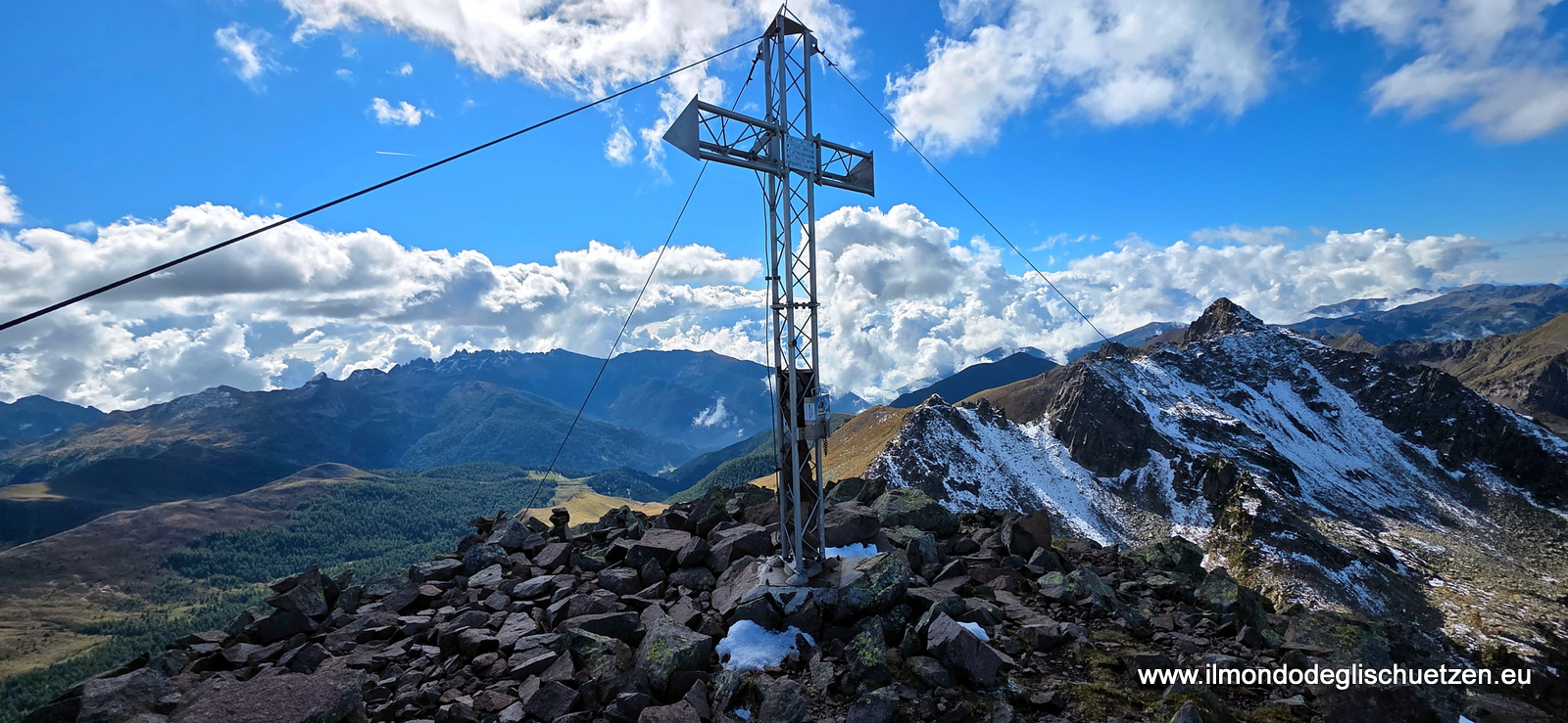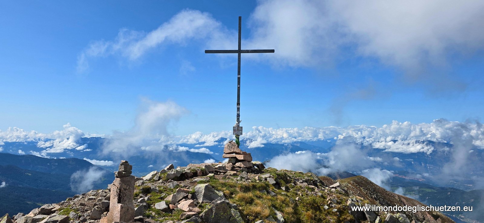 | 2025_09_11 cima Rujoch. Il monte Ruioch (2.432 m s.l.m. - Rujoch, Rohjoch o Rojoch in mocheno, Ruioch o Pale de Sprugio in dialetto trentino) è una montagna del Trentino Alto Adige appartenente alla catena del Lagorai. È un monte caratterizzato dalla presenza di due cime di altitudine simile sulla parte sommitale del crinale. La sua lunga dorsale è caratterizzata da varie prominenze ed anticime. Le due cime principali sono la cima Ruioch (2414 m) caratterizzata dalla grande croce metallica e lo Schliverlai Spitz (2432 m; localmente detto Cimon de Sprugio in dialetto trentino), che costituisce la maggiore elevazione di questa montagna. Partenza dal parcheggio malga Stramaiolo Bassa, direzione rifugio Tonini per il passo Campivel. Si prende il sentiero per la cima dopo ca 30 minuti si gira a sinistra verso Busona di val Mattio (mt 2160), si risale il pendio a sinistra fino al passo val Mattio (mt 2278) da qui a dx per la cima. La prima cima è lo Spitz Schliverai (mt 2432) poi la seconda il monte Rujoch (mt 2414). dsa qui proseguendo sulla dorsale fino al passo Polpen (mt 1939) quindi al parcheggio. | foto / Bilder | foto / Bilder |