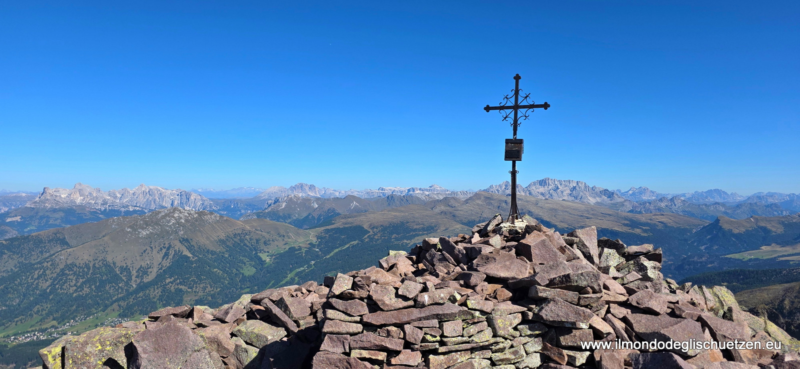 | 2025_09_15 Cima Bocche (mt 2745). Da Malga Vallazza (m 1935), quindi si tocca il Lago di Juribrutto, Forcella di Juribrutto, il Costone di Bocche e Cima Bocche. Rientro per la stessa via. Tutta la zona è ricchissima di tracce della Grande Guerra con resti di trincee, reticolati, caverne, baraccamenti. Da malga Vallazza si risale la bella stradella militare lastricata (segnavia 631) che rimonta la lunga dorsale di Cima Juribrutto fino ad un piccolo passo pianeggiante (2200 metri circa), che si scollina per scendere al bellissimo Lago Juribrutto. Di qui per segnavia 629 si cala fino al fondovalle della Val Juribrutto per poi risalire senza difficoltà alla Forcella Juribrutto m 2381. Seguire poi il sentiero 628 che si inerpica sul fianco est di Cima Bocche. Si sale a zig zag per il ripido costone fino a sbucare da una forcelletta sulla cresta, con resti di trincee e una croce in legno. Si prosegue ora senza difficoltà per belle balze seguendo la dorsale costellata di trincee, fino all’ampia cima pianeggiante, con un capitello e soprattutto uno spettacolare panorama sulle Dolomiti e sulla zona del Passo di S. Pellegrino. | foto / Bilder | foto / Bilder |